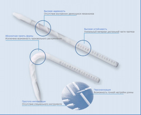 Во-вторых, все компоненты эндофаллопротеза имеют гидрофильное адсорбирующее покрытие, что при замачивании устройства в антибактериальный раствор приводит к адсорбции антибиотика на поверхности устройства, причем хирург может выбрать сам оптимальный, по его мнению, препарат. Кроме того, это покрытие при намокании многократно увеличивает гладкость поверхности и тем самым облегчает процесс имплантации устройства.