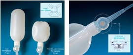 Во-вторых, усовершенствованная MS-помпа (MS Pump -Momentary Squize) - обеспечивает дефляцию одним нажатием на специально выделенную кнопку. В MS-помпе предусмотрен «обратный клапан», предотвращающий обратное перетекание жидкости из резервуара при надавливании.