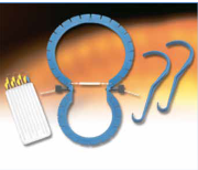 1. Ретрактор Скотта. AMS SKW Retractor System. Состоит из трех составляющих: Один ретрактор – восьмерка Набор стальных крючков (7 тупых и 1 острый) на эластичных шнурах Два жестких пластиковых крючка «baby deavor» |