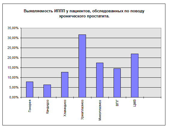 У 33 пациентов т.е. у 52,4% обследованных при отсутствии клинико-лабораторных признаков воспалительного процесса в мочеиспускательном канале были обнаружены ИППП.