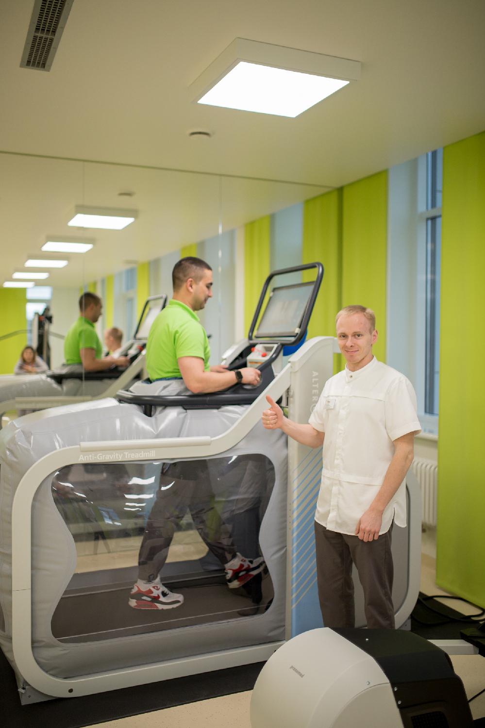 В отделении представлена передовая подвесная система «Левитас», которая обеспечивает безболезненное восстановление двигательной активности. Кроме того, «изюминкой» центра является беговая дорожка с эффектом антигравитации, позволяющая тренировать мышцы без нагрузки на суставы.